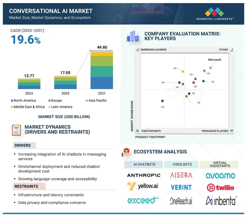 The conversational AI market is set for significant expansion and is expected to grow from USD 17.05 Billion in 2025 to USD 49.05 Billion by 2031