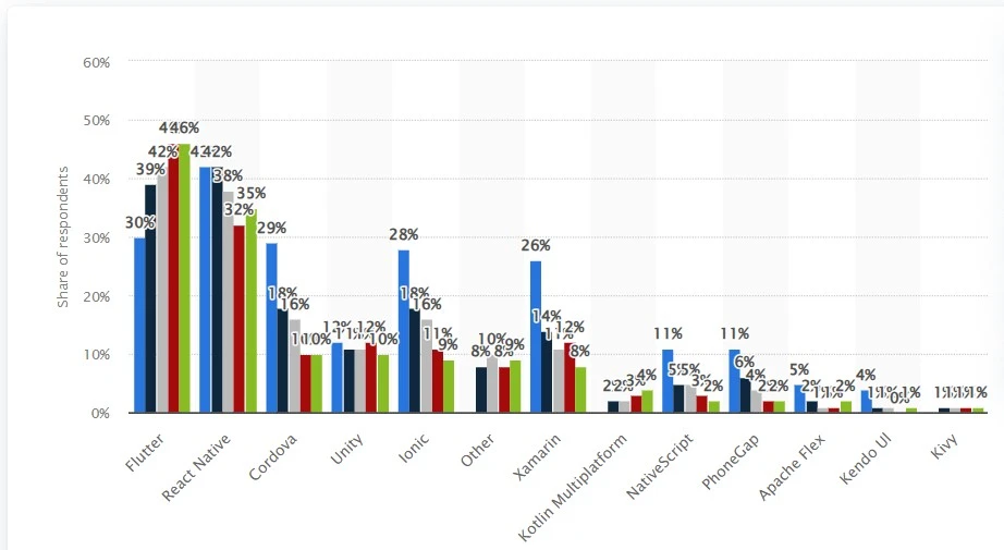 - In 2025, over 46% of cross-platform developers will use Flutter (Statista).
